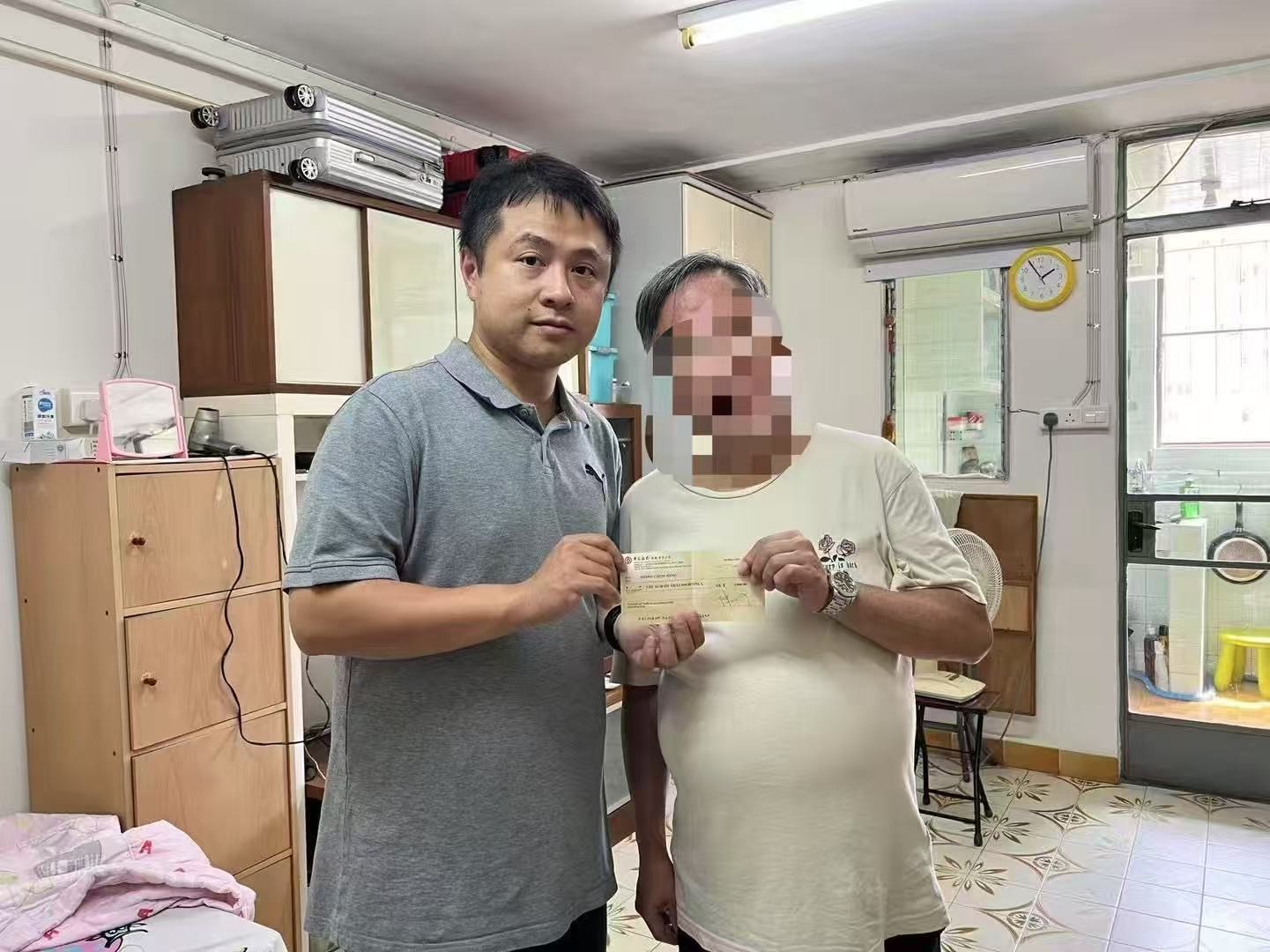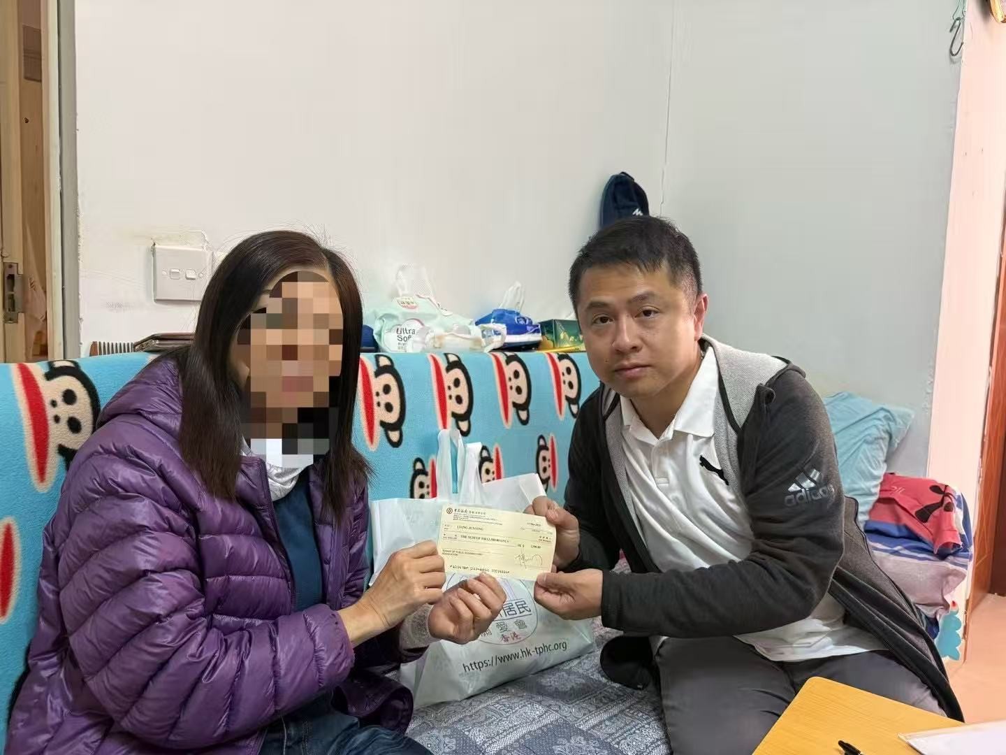 公屋居民關愛會為有需要家庭提供緊急救助。